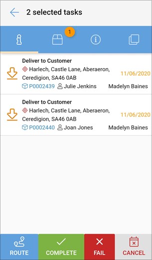 For Tasks to be grouped together, the address and landline contact number fields must both match exactly. If you’re not seeing Tasks to be delivered at the same address grouped together, check the customer records do match exactly.