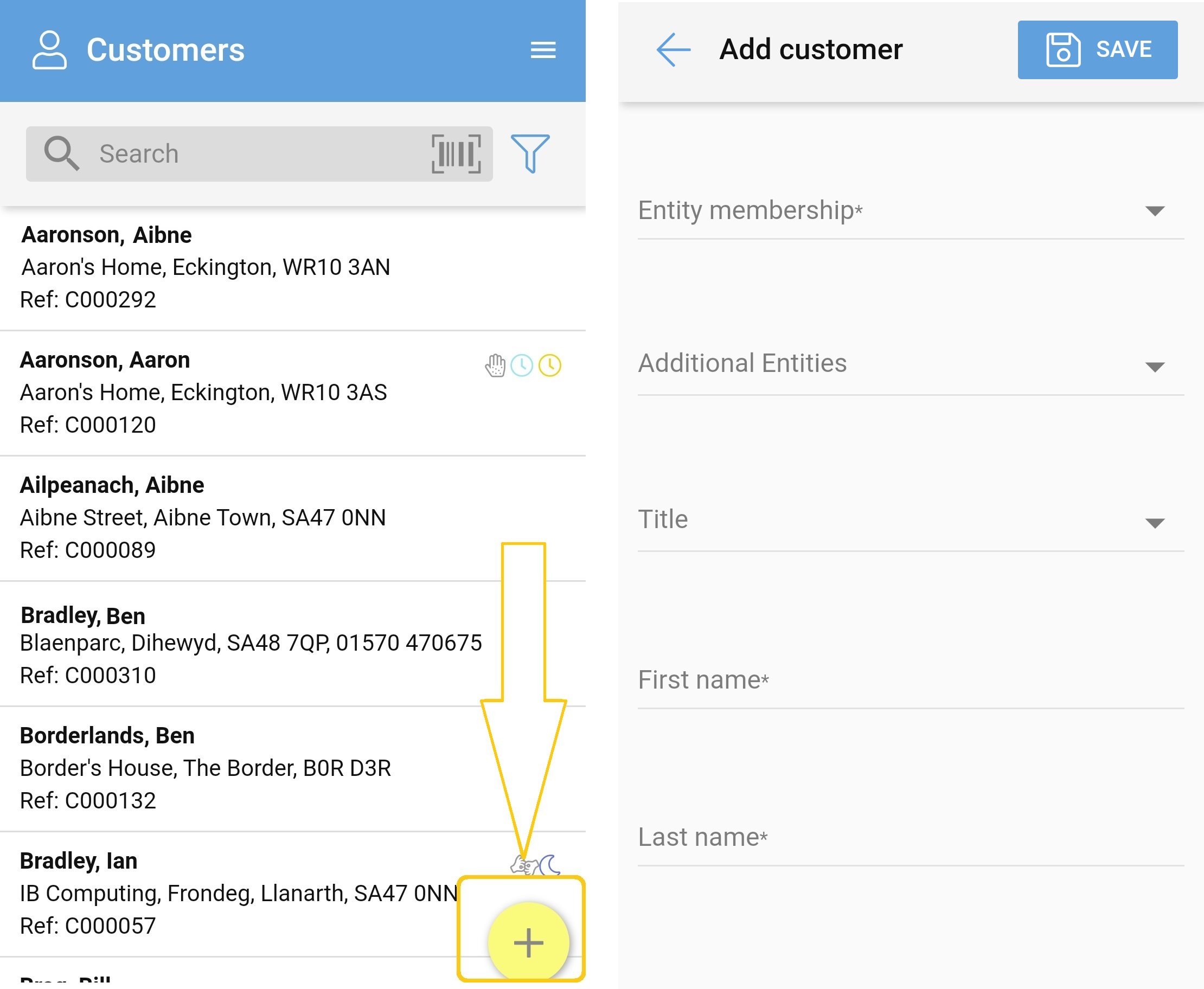Just enter the customer details using the fields shown and tap ‘Save’.