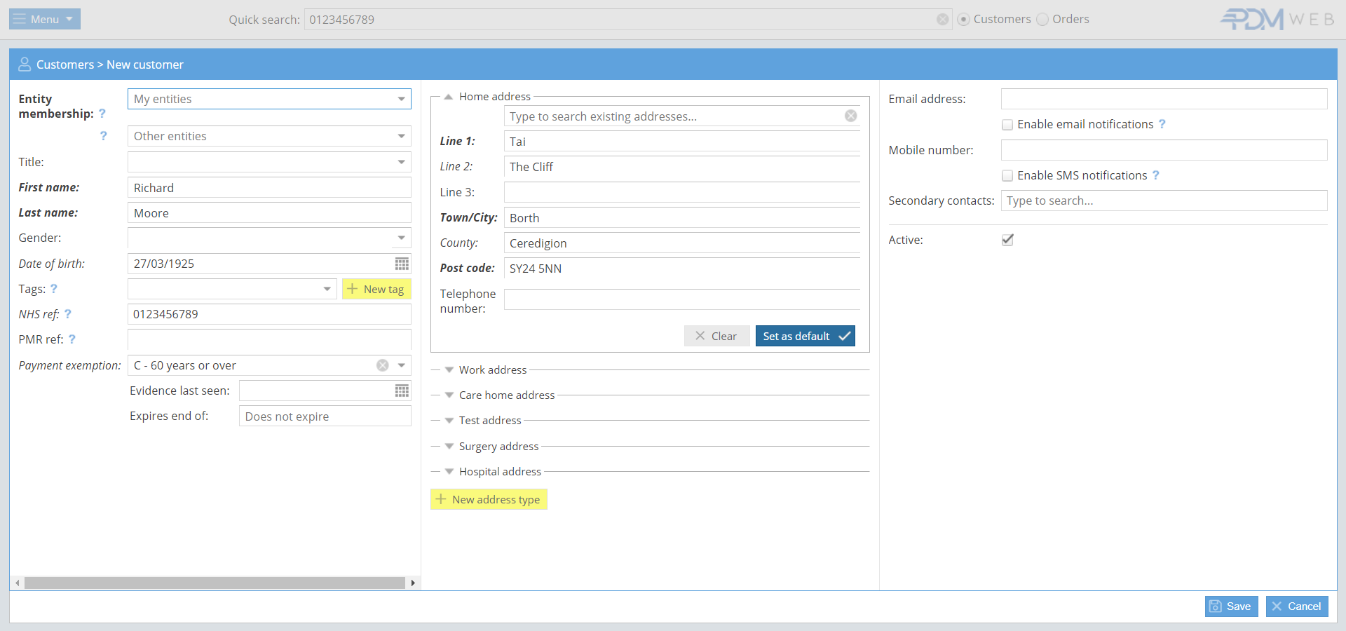 Check the data is correct and click ‘Save’ to add the customer to the database.