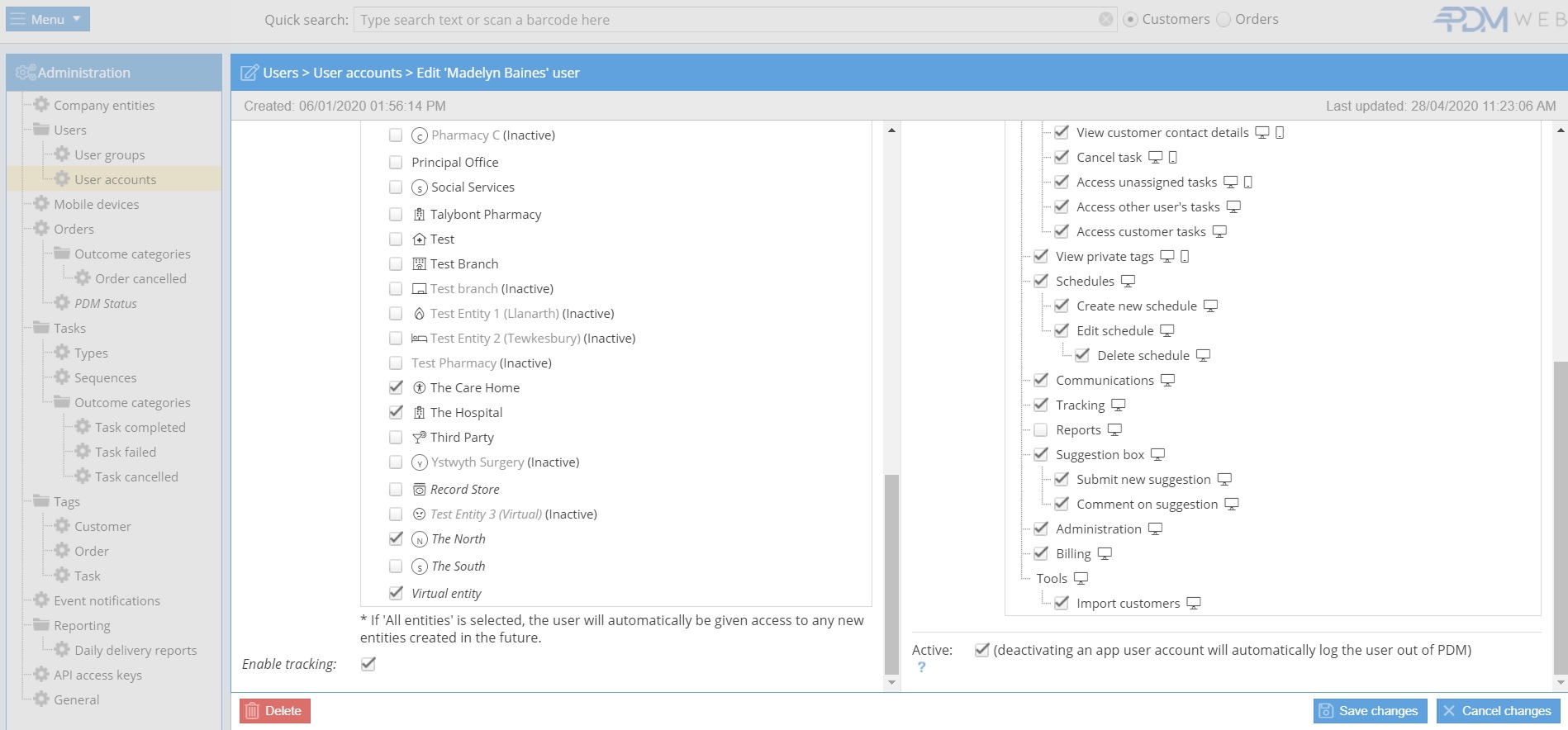 To ensure that the user’s location is tracked when using the PDM App for Android, you need to enable tracking on their user account. This can be done in PDM Web as described below.