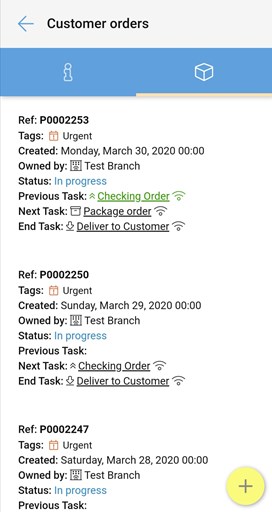 Create a new order from the Customer screen by tapping on the yellow +New Order button.