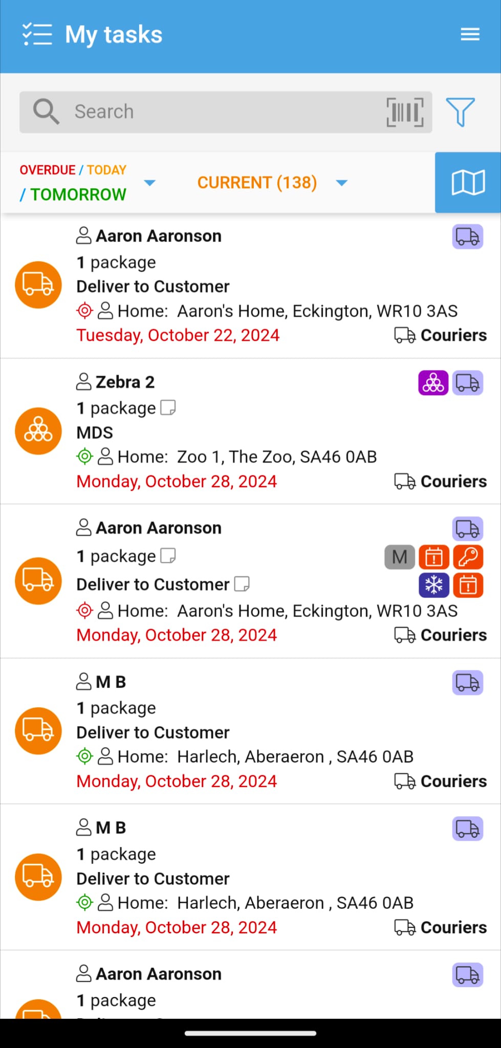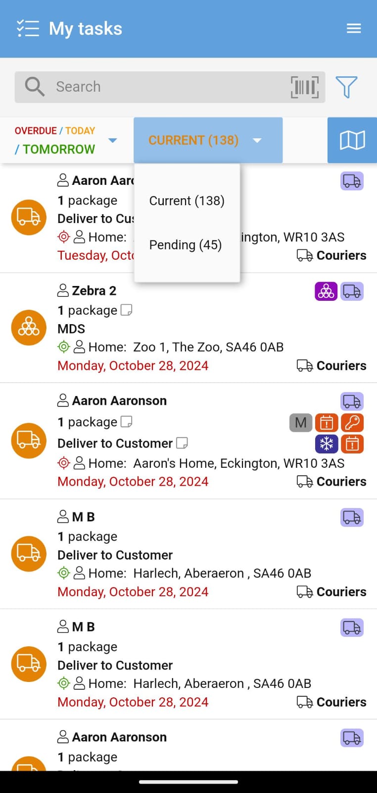 If no match is found for the above, it will return searches that match location postcodes. You can scan a PDM order label barcode using your phone’s camera to see all the associated tasks.