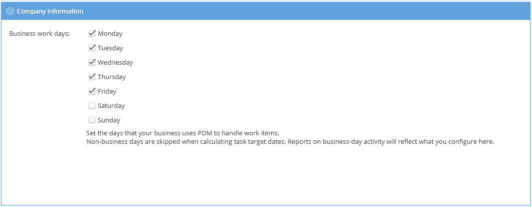 Select which days are your business days here.