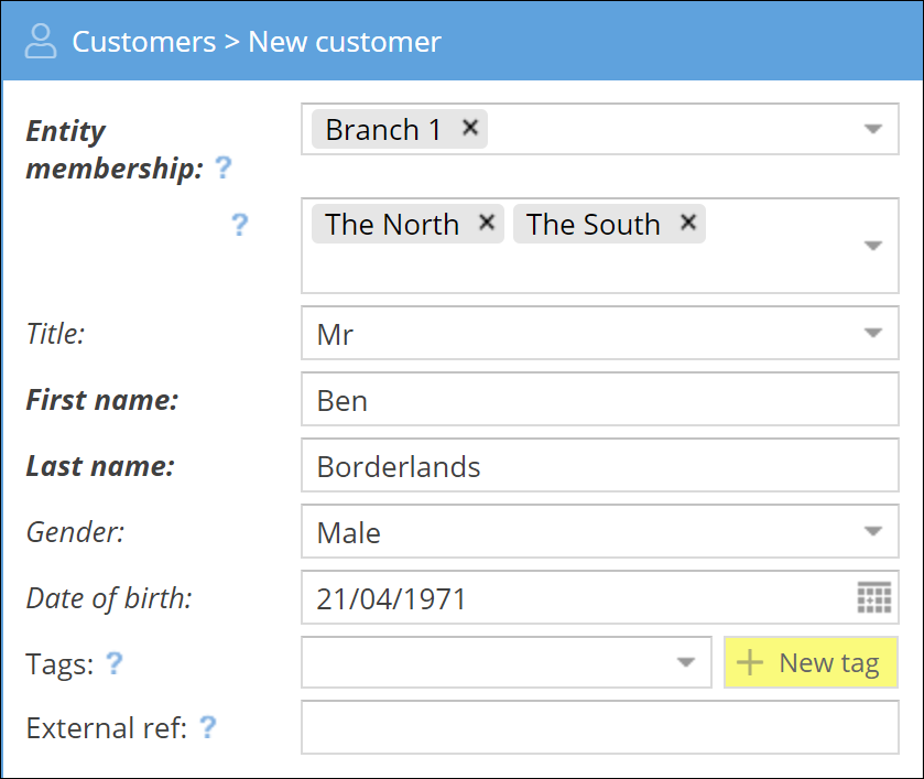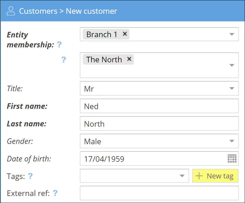 In this scenario, as we need to control deliveries to multiple regions, we’ll be adding them to multiple entities. As well as adding them to the relevant physical entities, customers in the North region will be assigned to 'The North' entity and those in the South region to 'The South' entity.