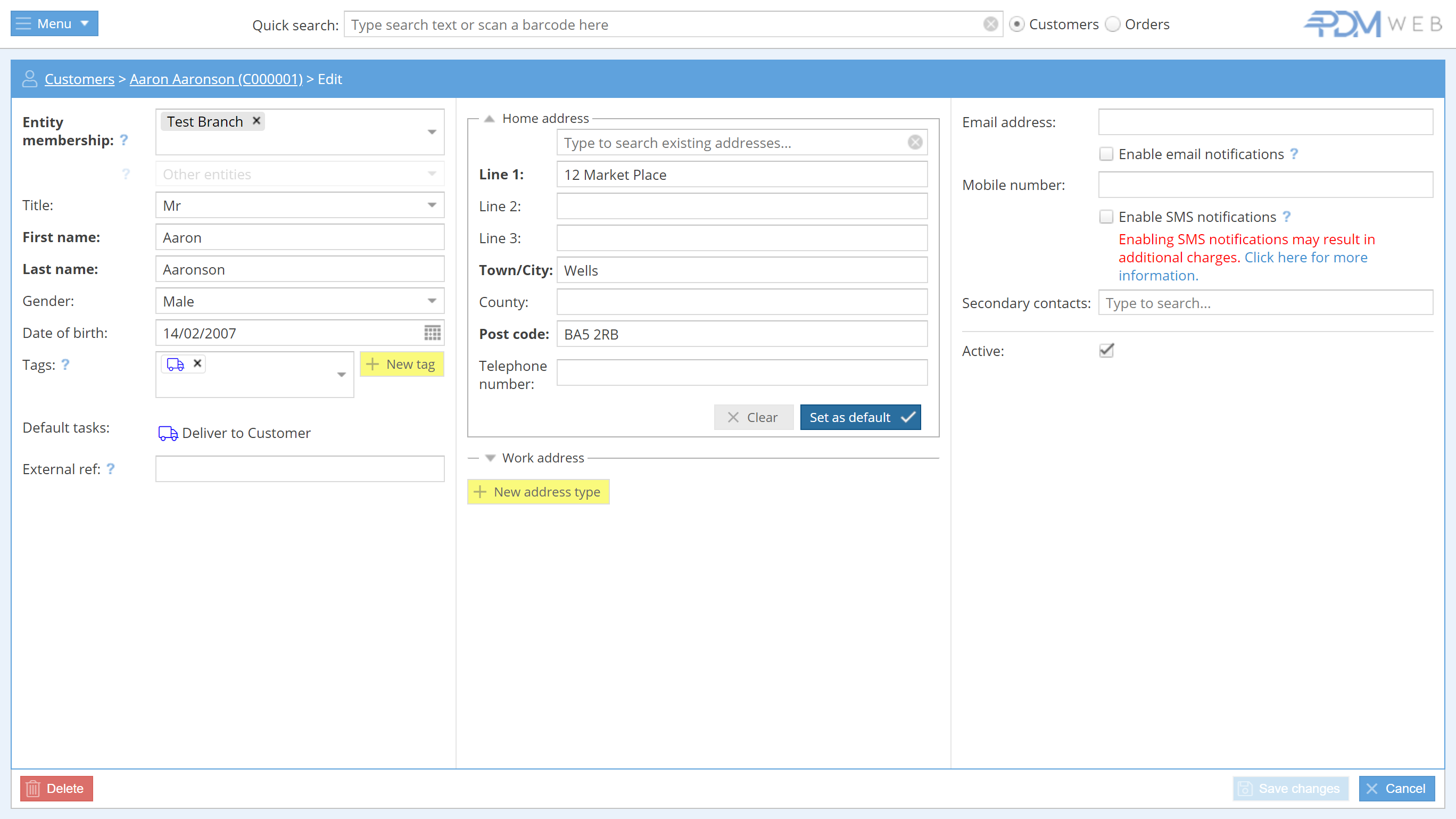 Alternatively, double-click on a customer to view their details, then click Edit customer.