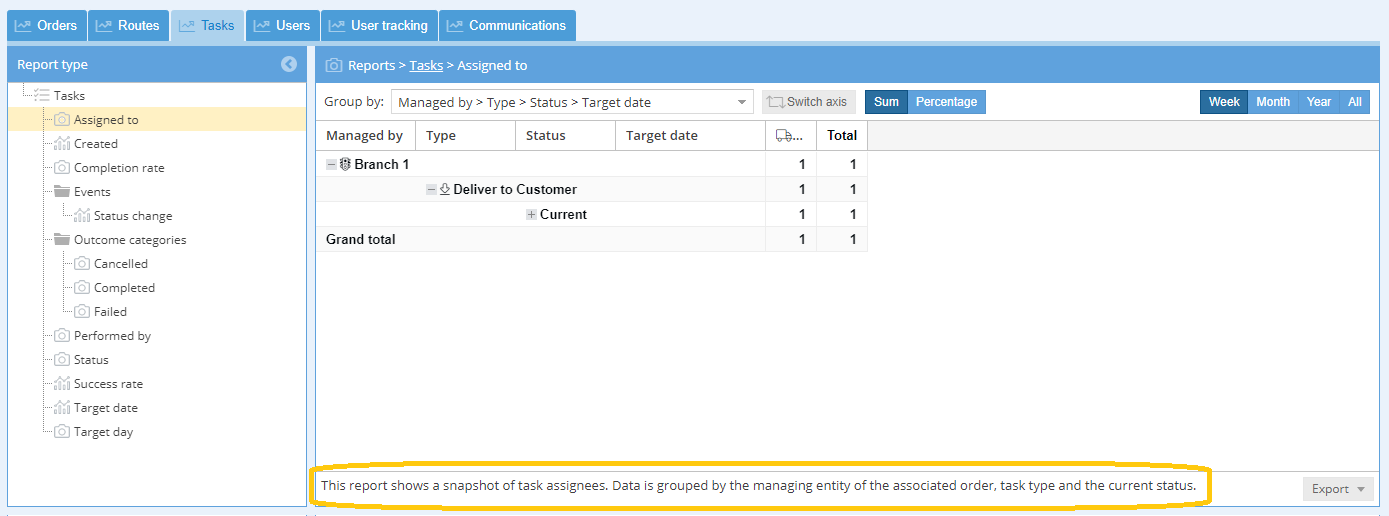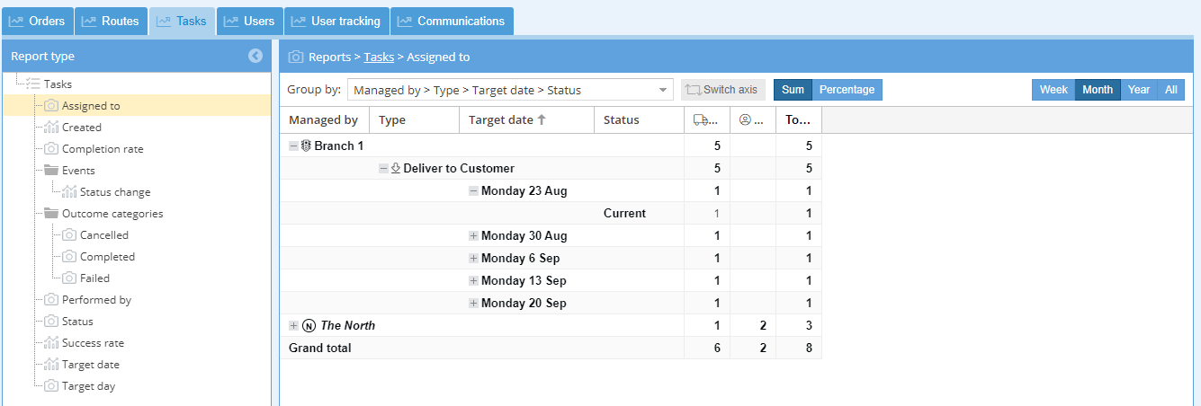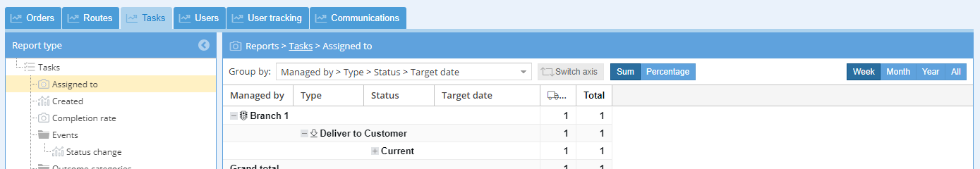Once you’ve selected the report you can choose how the information is grouped, switch axes, and choose whether it's displayed as a sum or a percentage.